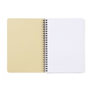100% recyklovaný prémiový papír 90 g/m² s dokonale hladkým saténovým povrchem, 100% recyklované kartonové desky, mikroperforace pro snadné odtržení listů, dvojitá drátová vazba, barevný assort, certifikát FSC