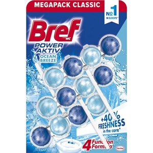 originální designový WC blok Bref Power Aktiv obsahuje novou účinnou recepturu, která v sobě skrývá čtyři funkce, jež vaší toaletě dodají hygienickou čistotu, dokonalou čisticí pěnu, ochrání před vodním kamenem a navíc poskytnou nádhernou dlouhotrvající svěžest
