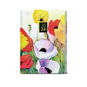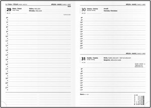 plnobarevné diáře potažené nepoškrabatelným matným laminem s parciálním lakem, rovný hřbet, české a slovenské jmenné kalendárium, mezinárodní svátky, místo na poznámky, peroforované rožky, formát 14,3 x 20,5 cm