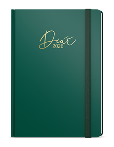 povrch diáře z matného nepoškrabatelného lamina se zlatou ražbou, rovný hřbet, zakulacené rohy, gumička v barvě diáře, , české a slovenské jmenné kalendárium, mezinárodní svátky, měsíční fáze, roční období, letní a zimní čas, místo na poznámky, formát 14,3 x 20,5 cm