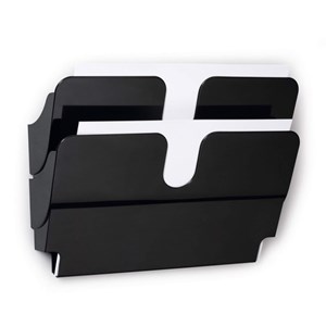 Nástěnný držák na prospekty se 2 přihrádkami na informace ve formátu A4 na šířku