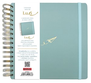 limitovaná edice scrapbooků se sametovým přebalem v moderní ledově modré barvě a se zlatým motivem Vlaštovky, jedinečná alba Luxi s krémovým papírem, kroužkovou vazbou a gumičkou pro všechna vaše tvoření, ručně vyráběná v České republice, pevné desky s gumičkou, uvnitř 40 stran 240g papíru umožňujících vlepování fotografií i psaní různými popisovači, počet stran je přizpůsoben spirále tak, aby se album i po zaplnění pohodlně uzavíralo, krásná a trvanlivá alba připravená stát se součástí vašich nejcennějších okamžiků, rozměry 210×210 mm, 20 listů