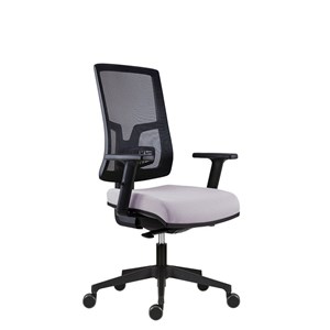 kancelářská židle s černou síťovinou na opěráku a bederní výztuhou, čalouněným sedákem, třípákovým synchronním mechanismem s automatickým nastavením síly protiváhy, čtyřnásobnou aretací a posuvem hloubky sedáku, plastovou nebo ALU leštěnou bází, nosností 150 kg, český výrobek, záruka 60 měsíců