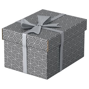 Stylové a moderní lepenkové úložné boxy se sundávacím víkem. Ideální pro zabalení dárků nebo pokud potřebujete doma rychle vytvořit úložný prostor. Sada tří boxů stejné velikosti, které můžete použít samostatně, uložit na polici nebo do krychlových úložných jednotek a skladovat v nich drobnosti, jako jsou fotografie nebo osobní dokumenty. Vše v nich bude úhledně zorganizované a snadno dohledatelné. A pokud box převážete stuhou, budete mít dárkovou krabičku! Až si obdarovaný svůj dárek rozbalí, může si krabičku ponechat k ukládání věcí, takže vlastně darujete 2 dárky v jednom. Vyrobeno z pevné 100% recyklované a 100% recyklovatelné vlnité lepenky s certifikací FSC. Otíratelný povrch má dvoubarevný geometrický design, který dodá vašemu ukládání věcí styl. Dodávají se v plochém balení a lze je rychle a snadno sestavit. Strany se během sestavování složí na sebe, což boxu dodá dvojnásobnou pevnost, aby byl pevný a jeho obsah dostatečně chráněný. Rozměry: 200 x 150 x 255 mm