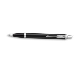 černé kuličkové pero Parker IM Essential má mosazné tělo s matnou lakovanou povrchovou úpravou. V kombinaci s doplňky pokovenými chromem, stiskací mechanismus, modrá náplň pro kuličková pera, délka psaní 3500 m, šíře stopy 1 mm
