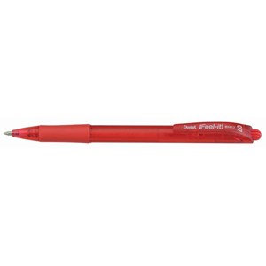 kuličkové pero s průhledným plastovým tělem, inovativní inkoust s nízkou viskozitou poskytující hladký pocit při psaní, tenké tělo usnadňuje držení, šíře stopy 0,5 mm, pogumované držení pro pohodlné psaní, náplň: R1407