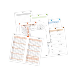 Kompletní sada formulářů pro týdenní plánování formátu A5, formuláře A5 o rozměrech 21 x 13 cm, sada obsahuje tyto termínované (datované) listy: Diář A5 (měsíční sešítek), Plánovací kalendář, Týdenní plán pravý, dále obsahuje netermínované listy: Roční plán, Nezapomeň, Týdenní rozvrh, Roční rozvrh, Klíčové oblasti, Telefonní seznam, Poznámkové listy, sada je balena v PE sáčku