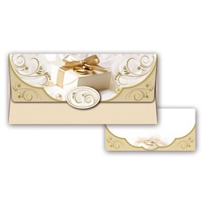 Dárková obálka na peníze - pro novomanžele - Udělejte novomanželům radost a věnujte jim obálku s penězi nebo dárkovým poukazem. Uvnitř je kartička bez textu, na kterou můžete napsat věnování.