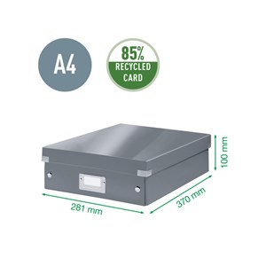 Střední organizační krabice Leitz Click & Store WOW je praktickým řešením pro přehledné uložení drobností v kanceláři i domácnosti. Díky skládací konstrukci šetří místo při nepoužívání a flexibilní přihrádky umožňují přizpůsobit vnitřní prostor podle aktuálních potřeb.