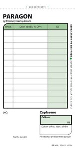 Kód: 120700 Dostupnost Optys 1070 paragon blok 75 mm x 150 mm nečíslovaný 100 listů tiskopis splňuje všechny platné požadavky zákona o DPH, nepropisovací, nečíslovaný, formát 75 x 150 mm na výšku, obsahuje 100 listů odtržitelných perforací 30,10 Kč bez DPH Dostupnost: Dostupné Množství: Přidat do košíku Podrobnosti tiskopis splňuje všechny platné požadavky zákona o DPH, nepropisovací, nečíslovaný, formát 75 x 150 mm na výšku, obsahuje 100 listů odtržitelných perforací