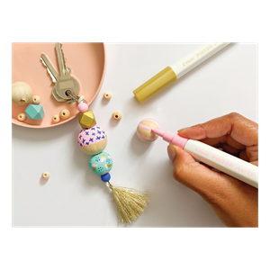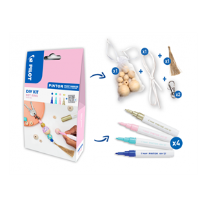 Akrylový popisovač Pintor, který píše téměř na všechny povrchy. Sada v dárkovém sáčku obsahuje: 1 x Pintor (hrot Extra Fine): modrý, pastelově zelený, pastelově růžový, zlatý + 2 x sady pro vytvoření přívěsku. Vysoce odolný vláknový hrot, inkoust na vodní bázi s akrylovými složkami a vysokým obsahem pigmentů, vodě a světlu odolný. Vysoká krycí schopnost, mix barev. Permanentní v závislosti na povrchu a dalším ošetření stopy (např. ošetření bezbarvým lakem, přežehlení, fixace vysokou teplotou atd.). Neskladujte hrotem dolů. Průměr hrotu: 2,3 mm, šířka stopy: 0,7 mm.
