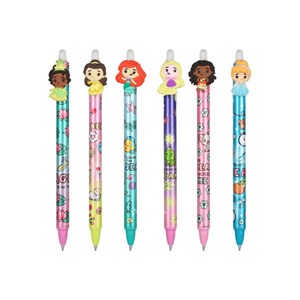 praktická gumovatelná pera pro děti s měkkou koncovkou a motivy nejznámějších princezen z dílny Walt Disney, kvalitní inkoust lze v případě potřeby jednoduše vygumovat a přepsat, šířka stopy: 0,5 mm, barva náplně: modrá, stiskací mechanika v klipu
