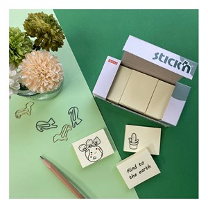 samolepicí bločky jsou vyrobené z papíru, který pochází z ekologicky obhospodařovaných lesů, certifikovaný papír šetrný k přírodě využívá lepidlo na vodní bázi, lístky jdou snadno nalepit a odlepit, přesto skvěle drží