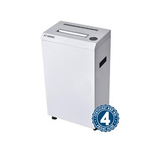 Tato profesionální skartovačka je robustní model v celoplechovém provedení vhodný pro středně velké kanceláře — nabízí automatický start/stop, zpětný chod, LED/LCD displej pro kontrolu, tepelnou pojistku a tichý chod pod 56 dB. Typ řezu křížový, velikost řezu 1 × 2 mm, stupeň utajení P-7, kapacita 6 listů (70 g/m²), objem koše 53 l, hmotnost 34,5 kg, hlučnost pod cca 56 dB, rozměr 420 × 350 × 750 mm, skartuje papír, sponky, kancelářské svorky.