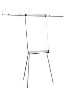 magnetický bílý lakovaný kovový povrch tabule je zvlášť vhodný pro suché popisovače, magnety, flipchart bloky, univerzální závěsná lišta pro uchycení bloků, kovový stojan s nastavitelnou výškou, odkládací lišta, rozměr používaného bloku 95 x 68 cm, rozměr tabule 100 x 70 cm