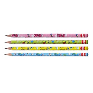 vysoce kvalitní lipové dřevo pro snadné ořezávání, 4 různě barevné designy s dětským motivem, speciální tuha pro jemné a pohodlné psaní, tvrdost 2 = HB, neškrábe, silná a odolná tuha, ergonomický trojhranný tvar