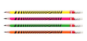grafitová tužka se silnou a odolnou tuhou HB pro jemné psaní, ve 4 zářivých neonových barvách, vysoce kvalitní dřevo pro snadné ořezávání, trojhranný ergonomický tvar, s bílou pryží, ideální pro použití doma, v kanceláři a ve škole