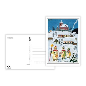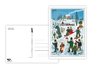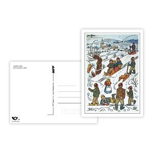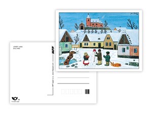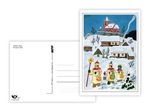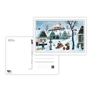 Vánoční pohlednice Josef Lada - V této sadě pohledů najdete nejznámější Vánoční obrázky Josefa Lady. Malíř Josef Lada Vás ve svých obrázcích zavede do zasněžených Hrusic, na návsi potkáme ponocného, u potoka sáňkují děti a nesmí chybět ani Ladův tradiční betlém. Na zadní straně těchto pohledu není předtištěný text s přáním.