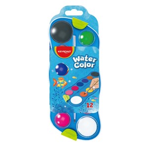 vodové barvy s malířskou paletou v atraktivním designu, balení obsahuje 12 barev včetně malířského štětce, vodové barvy jsou určeny pro školu i volný čas, vysoká pigmentace vytváří jasné a zářivé barvy s vysokými krycími vlastnosti