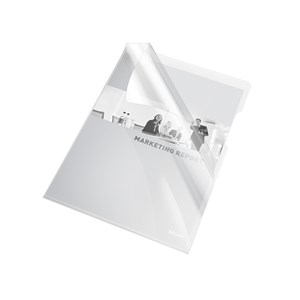 Desky na dokumenty typu L s hladkým povrchem, vyrobené z tuhé kvalitní PVC fólie pro reprezentativní vzhled, přístup z horní i boční strany, s vykrojením pro snadnou manipulaci, čiré provedení, síla 150 mic, balení 25 ks.