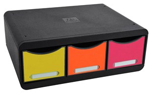 Zásuvkový box Exacompta Iderama - černý duhový / 3 zásuvky na šířku nízký