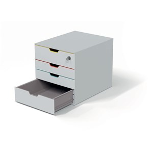 atraktivní, inovativní box s hladce výsuvnými zásuvkami a štítky pro jejich označení, box je vyroben z vysoce kvalitního plastu a je možno jej stohovat, vhodný pro tiskoviny formátu A4 a C4, se 4 zásuvkami a zámkem, rozměr: 280x 292x 356 (š x v x )