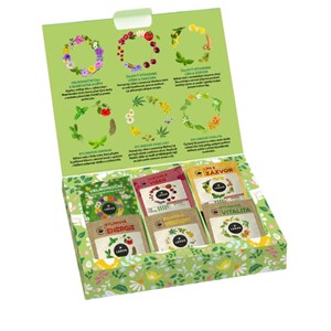 Dárková kazeta s výběrem 6 voňavých čajů ideálních ke svátečnímu jarnímu období. Novinkou je velikonoční čaj s barevnými květy s kopřivou, mateřídouškou a petrklíčem. Bylinkové čaje podpoří vitalitu, energii a veselost.